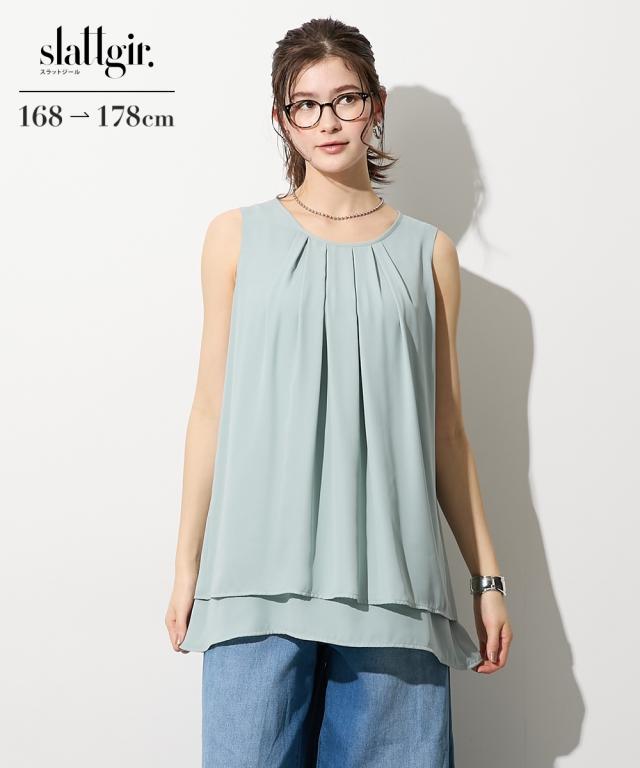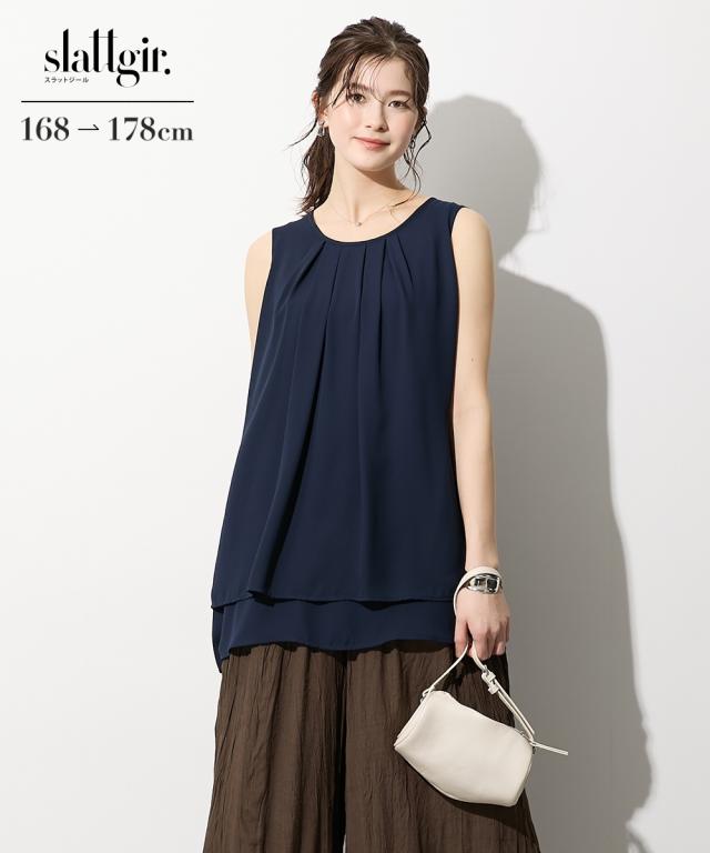 トールサイズ レディース 高身長 ジョーゼット ノースリーブ タック ブラウス M/L