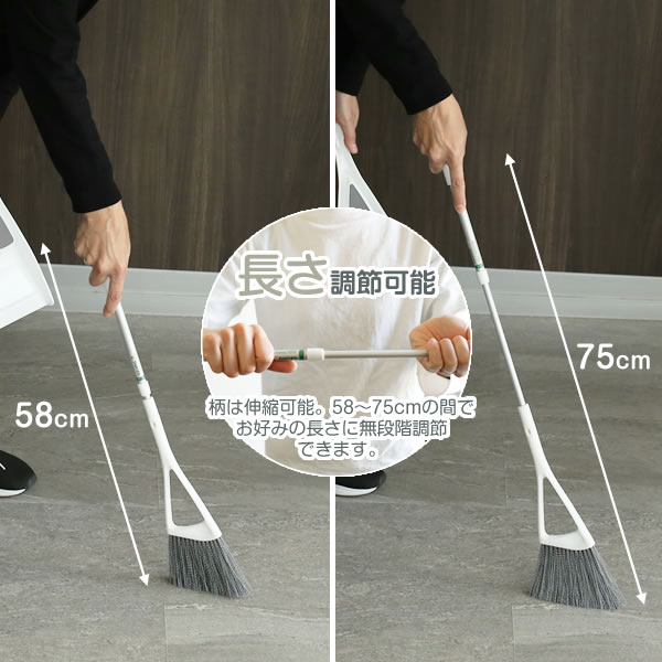 長さ調節可能柄は伸縮可能。58〜75cmの間で使いやすい長さに無段階調節できます。