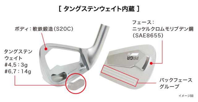 | 素材 | フェース:ニッケルクロムモリブデン鋼(SAE8655) ボディ:軟鉄(S20C) ウエイト:タングステン合金(#4-7) | |