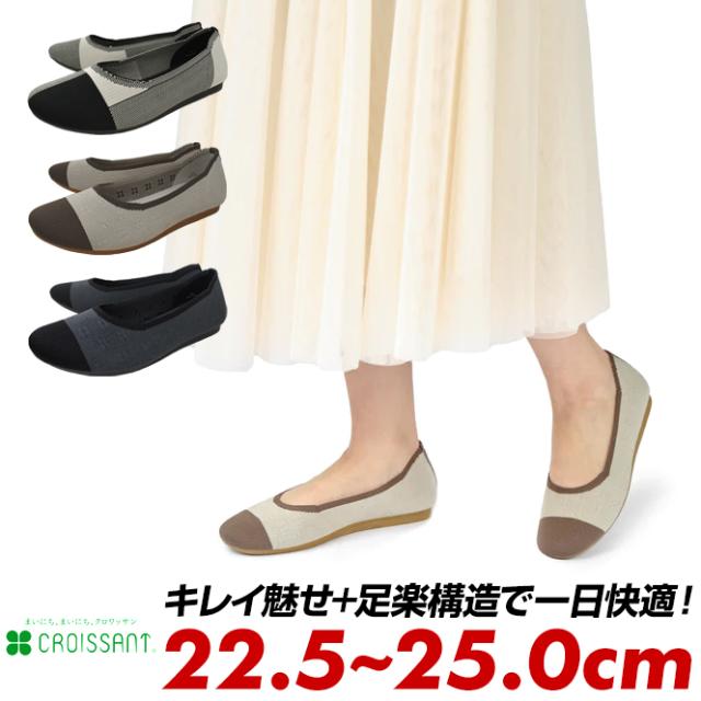 CROISSANT フラットパンプス レディース コンフォートシューズ ローヒール 痛くない 歩きやすい 疲れない 履きやすい ウェッジソール 黒 白 生成り 茶色 靴 クロワッサン ウェッジパンプス ぺたんこ靴 フラットシューズ 冬新作 ポイント消化