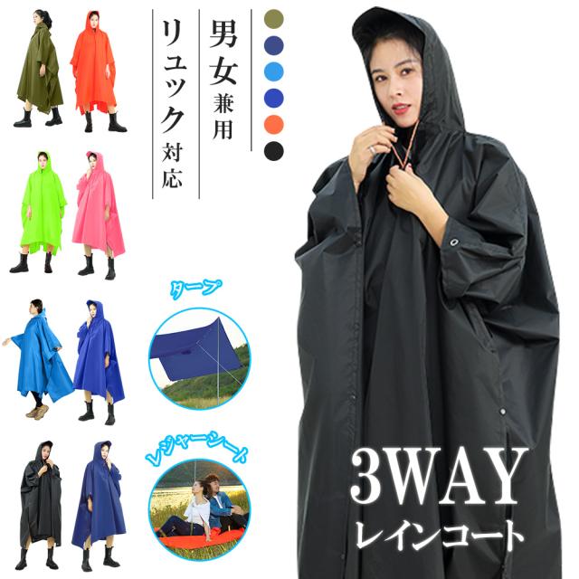 【3WAY使用】レインコート 自転車 レディース メンズ 収納袋付き レインポンチョ ロング丈 レインウェア リュック対応 タープ レジャーシート ポンチョ コート ランドセル対応 撥水 通勤 通学 登山 バイク 雨よけ 雨具 梅雨 雪 台風 防災 おしゃれ アウトドア 軽量 送料無料