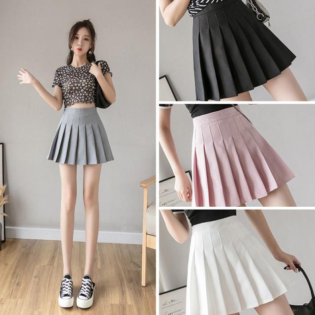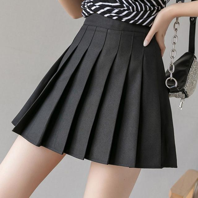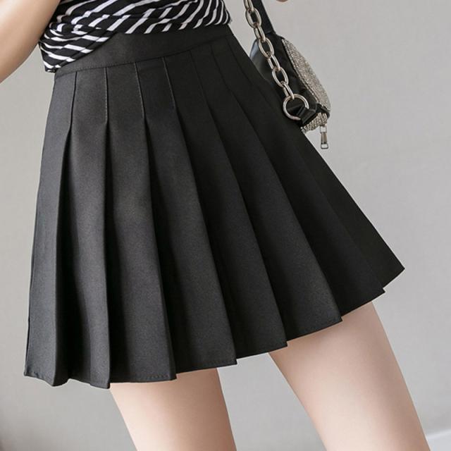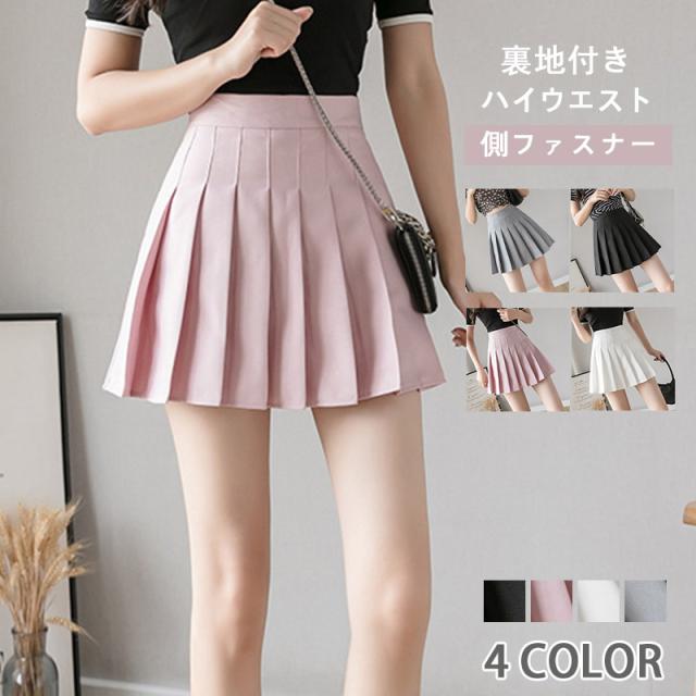 韓国ファッション プリーツスカート Aラインスカート ミニスカート ハイウエスト スカート 裏地付き 側ファスナー 通学通勤 無地 母の日