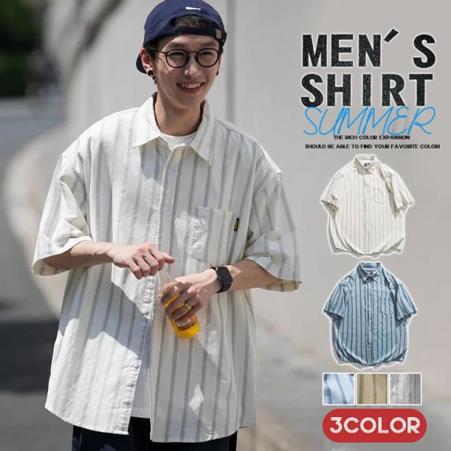 カジュアルシャツ メンズ 半袖シャツ ストライプ 開襟シャツ カジュアル ビジネス 無地 トップス おしゃれ シンプル 通勤 夏服