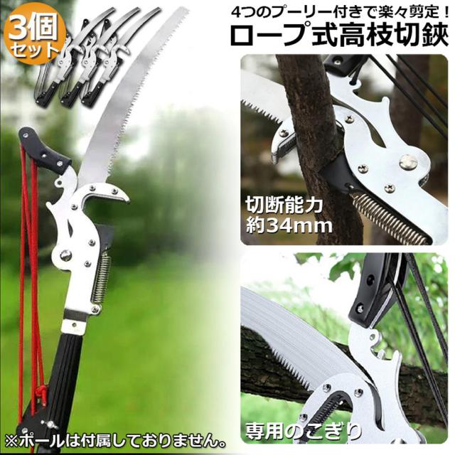 高枝切りバサミ 高枝切鋏 3個セット 剪定鋏 高枝切り鋏 高枝きりばさみ ロープ式 高枝切りのこぎり 高枝ノコギリ 高枝切りバサミ 軽量 はさみ 剪定 果実 採取 枝切 ハサミ 園芸 ガーデニング用品