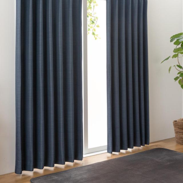 クールなネイビーカラーのベーシックなドレープカーテンです。3級遮光・形状記憶加工・ウォッシャブル仕様など機能性に優れています。生地はしっかりとした厚みと程よい光沢があり、シンプルにもスタイリッシュにも合わせやすい色味なのでリビングやダイニング、寝室など様々なお部屋でご使用いただけます。