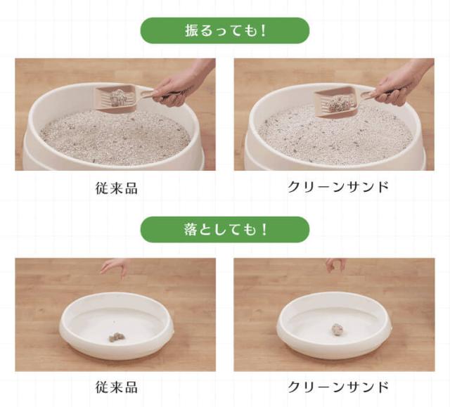 - 梅雨に入ったせいなのかロットのせいかは分かりませんが、猫砂交換した所、回収の際固まっておらずスコップから全部落ちます。同商品(ロット違い)の交換前は固まっていたのですが……