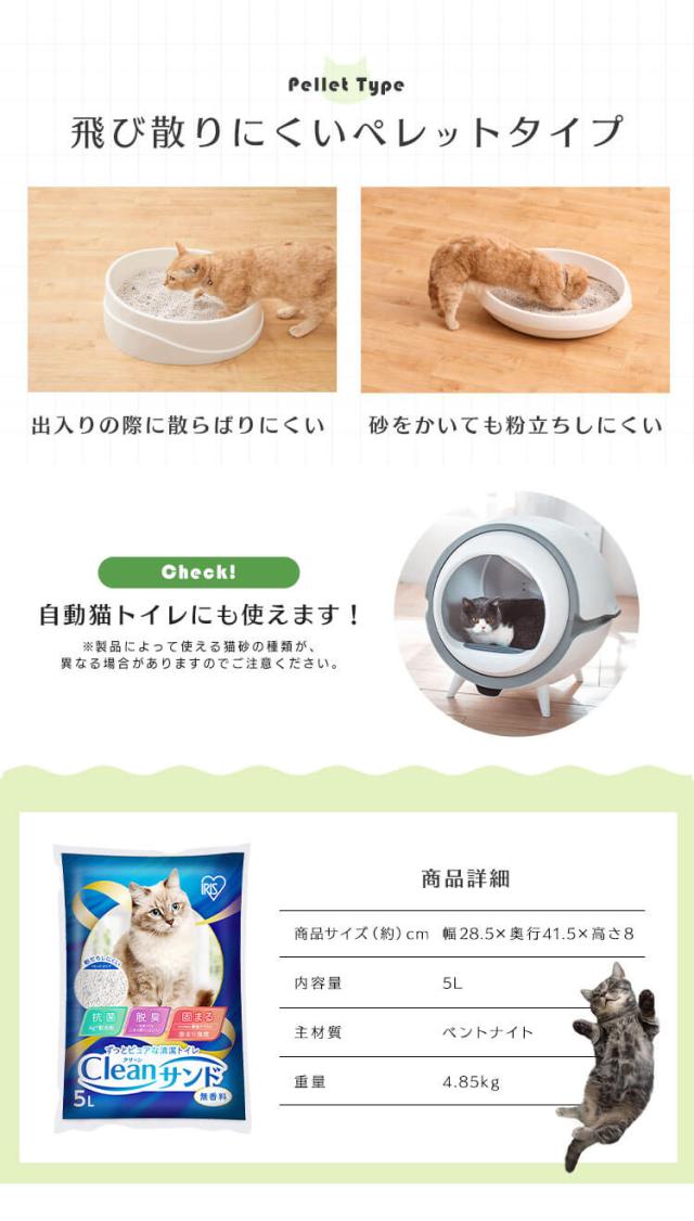 猫砂 クリーンサンド 5L 無香料 CLS-5L 4袋セット おすすめ 鉱物 鉱物系 固まる ベントナイト 5l ねこ砂 猫トイレ用品 猫 ねこ ネコ トイレ 抗菌 脱臭 ニオイ におい 飛び散り防止 アイリスオーヤマ