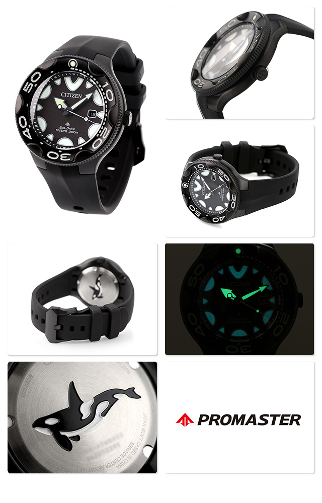 正規品 7年保証キャンペーン 送料無料 シチズン プロマスター MARINEシリーズ エコ・ドライブ ダイバー200m オルカ ダイバーズウォッチ ソーラー エコドライブ メンズ 腕時計 BN0235-01E CITIZEN PROMASTER アナログ ブラック 黒 ◆機能性、耐久性、安全性を兼ね備えた本格スポーツウオッチ、シチズン PROMASTER(プロマスター)。海外で人気を集めてきたダイバーズウオッチが日本初登場。オルカをモチーフにした独創的なデザインが視線を惹きつけます。2022年度グッドデザイン賞受賞。オルカ(シャチ)をモチーフにした独創的なデザイン。オルカのフォルムのような流線型のケースラインやふっくらとした時分針、オルカが水面に上がった際の背中をイメージしたウレタンバンドなど、ディテールにもこだわっています。12時の位置と奇数時のインデックスは、オルカが水面から顔を出す際のシルエットをイメージしています。裏ぶたには、雄大なオルカが泳ぐ姿のマーキングが入っています。 発売日:2023年5月発売