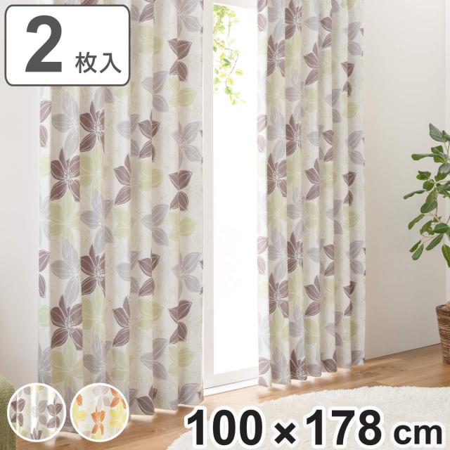 遮光カーテン 2級遮光 形状記憶 花柄 幅100cm×丈178cm 2枚組 ( カーテン ドレープカーテン ドレープ 機能カーテン 遮光 既製 両開き 間仕切り 窓 目隠し ウォッシャブル プリーツ加工 花 柄 2枚セット 掃き出し窓 )