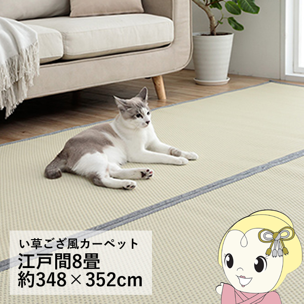 両面使用できるリバーシブル仕様。 汚れに強い。 い草ござ風お手入れ簡単カーペット。 ■サイズ 江戸間8畳 約348×352cm ■カラー グレー ■組成 表地=ポリプロピレン100% ヘリ=ポリエステル100% ■原産国 日本 ■洗濯表示 水拭き・水洗い可能 ※ 畳のお部屋に上敷きとして使用する場合は市販の上敷き鋲との併用をおすすめします。 ※ 滑りやすい床等で使用する場合は市販の滑り止めシートとの併用をおすすめします。 ※ 掲載写真は表記サイズと異なる場合がございます。 ※写真はメーカー様のカタログ等から掲載させて頂いております。 実物の商品と写真の色が若干写真写り等により異なる場合がありますのでご注意くださいませ。 万が一の際でございましても返品はお受け致しかねます。 ※記載は商品仕様の一部です。仕様説明不足等の理由での返品はできません。特に適合等は必ずご確認ください。