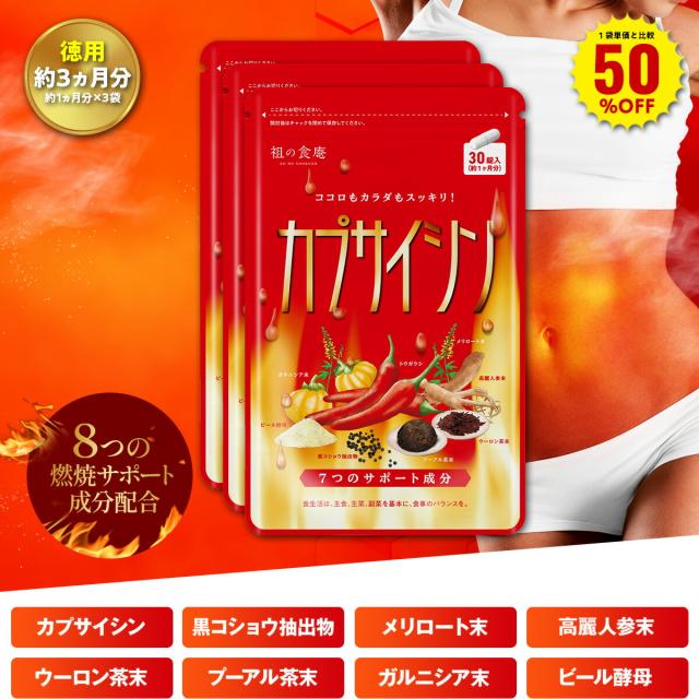 \【徳用】90日分まとめ買い半額!/8つの燃焼サポート成分配合!カプサイシン≪約3ヵ月分≫燃焼系 ダイエット サプリ カプサイシン 約1ヵ月分 サプリメント プーアル茶 唐辛子 Diet ビール酵母 ウーロン茶 高麗人参 ガルニシア ※冷凍商品との同梱不可※