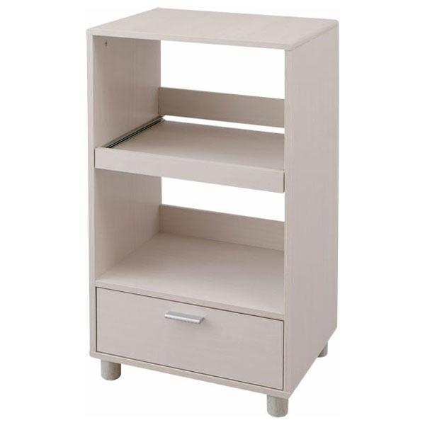 ・脚:ポリプロピレン - 耐荷重(約):全体43kg、天板15kg、固定棚板15kg、スライド棚10kg、引出し3kg