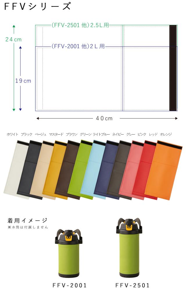 FFV-2001他用 19cm×40cm FFV-2501他用 24cm×40cm ※FFV他用シリーズは、高さが19cmまたは24cm以上かつ外周が36〜38cmまでであれば、他のメーカー製品にも着用可能です。 FJQ-2000専用 19cm×40cm FJQ-2500専用 24cm×40cm |
