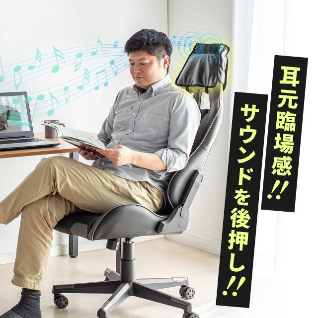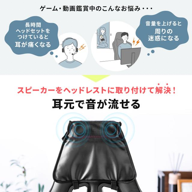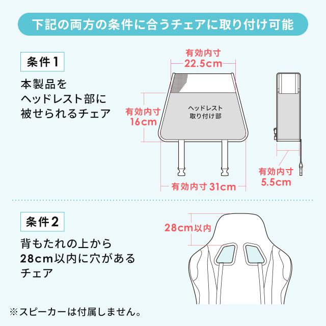 ●チェアのヘッドレストに取り付けて使用するスピーカーアタッチメントです。●ヘッドレストにスピーカーを後付けすることで、臨場感が増します。