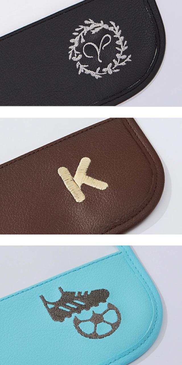 無地のままでももちろんステキなのですが、下部のレザー部分に名入れ刺繍をすることができます。