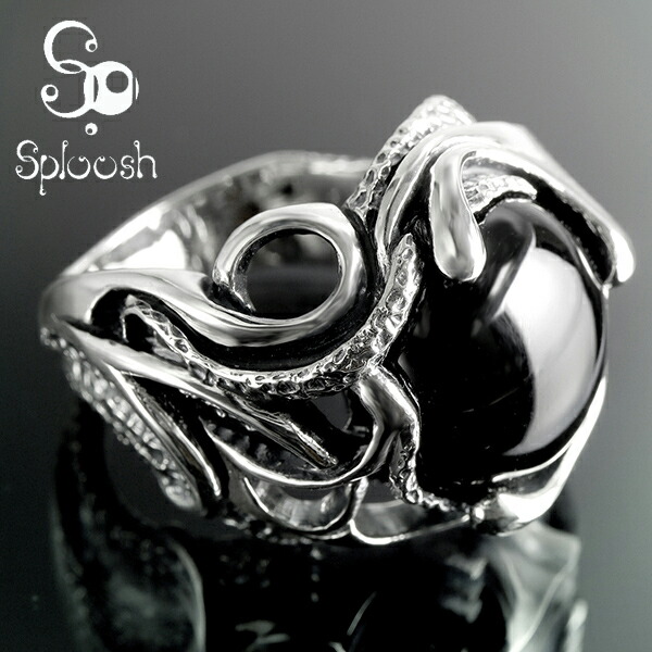 スプルーシュ オニキス 曲線 シルバー リング 18~25号 指輪 メンズ シルバー925 石付き 天然石 ブラック 黒 大きめ 海 生物 タコ モチーフ