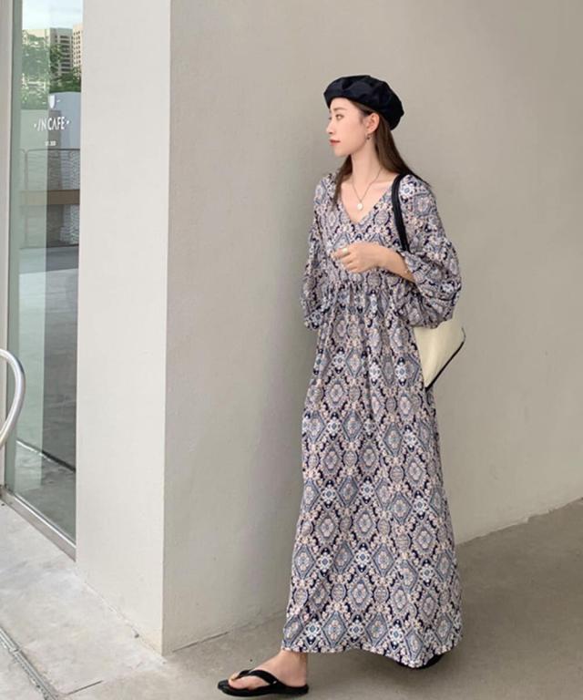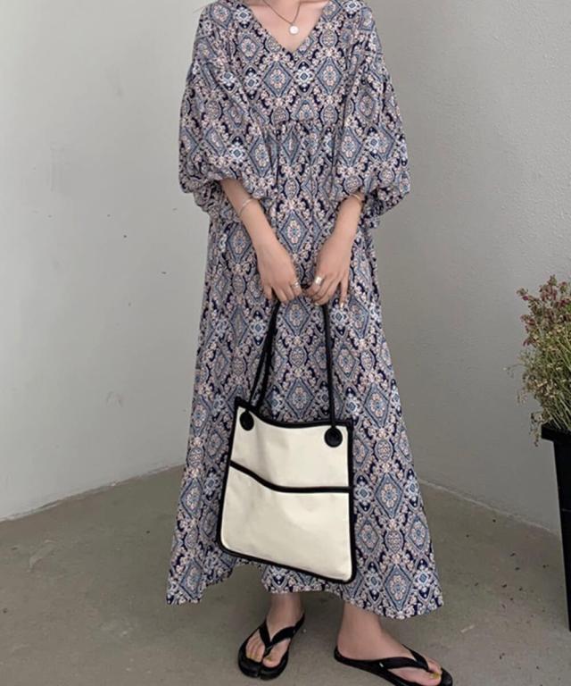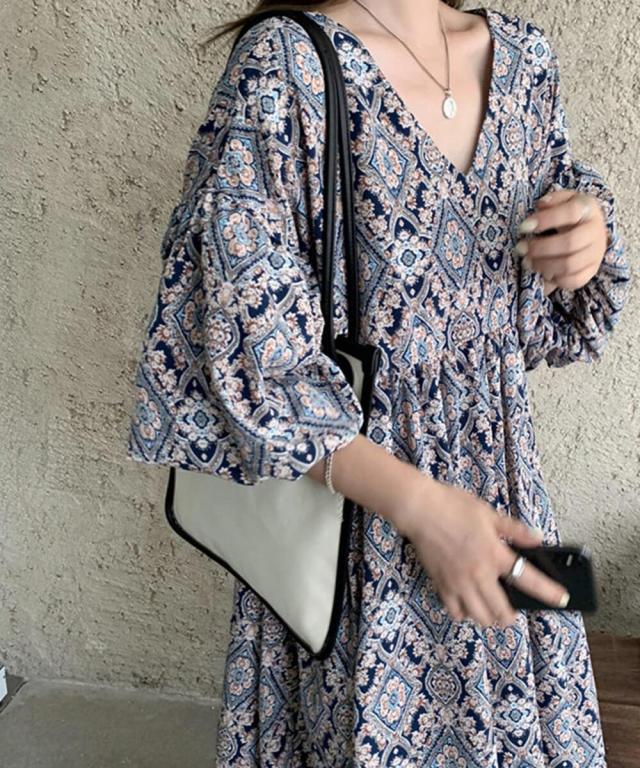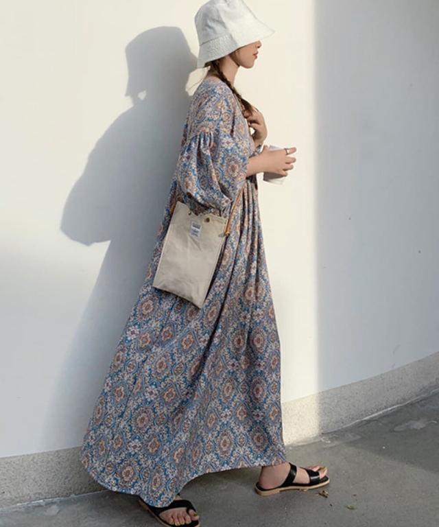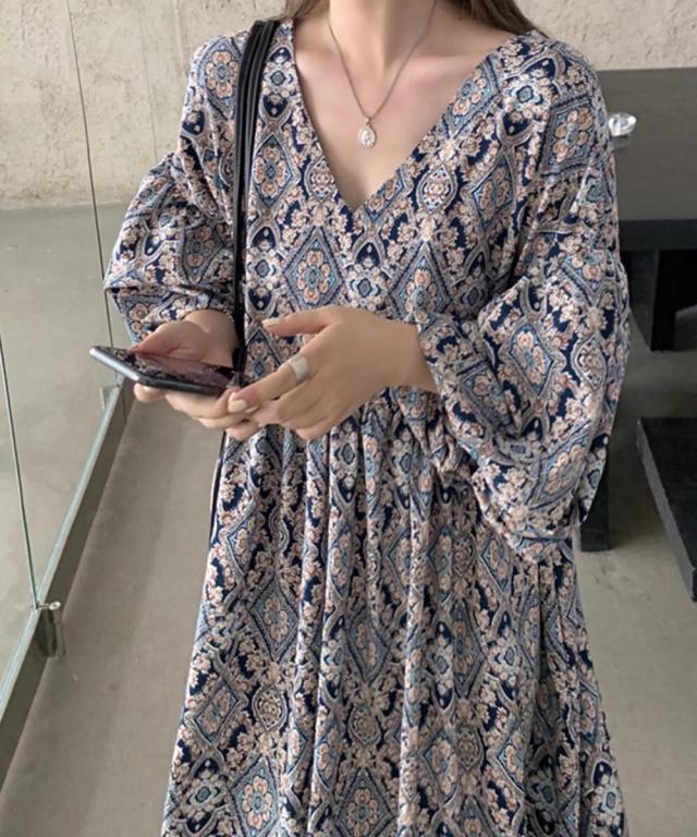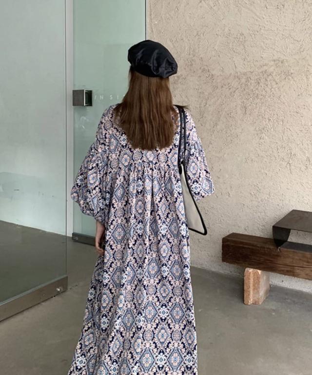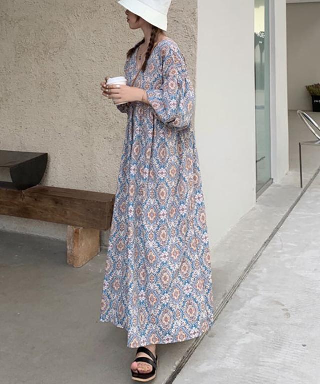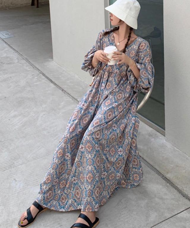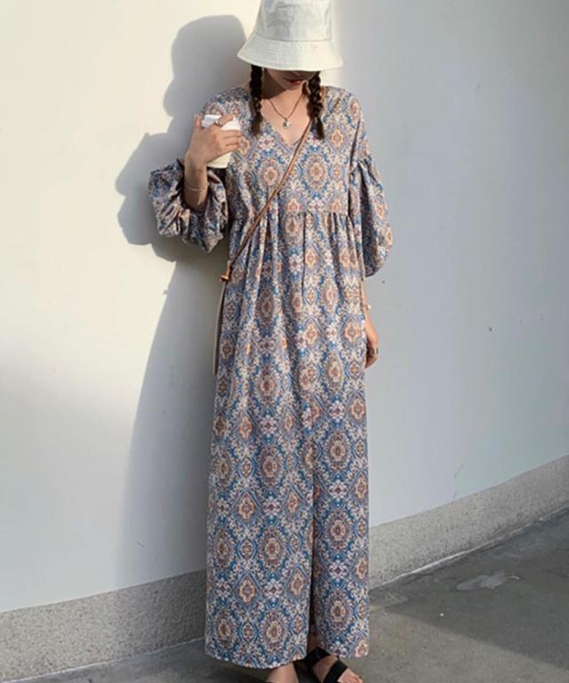 おしゃれなペイズリー柄のロングワンピース。