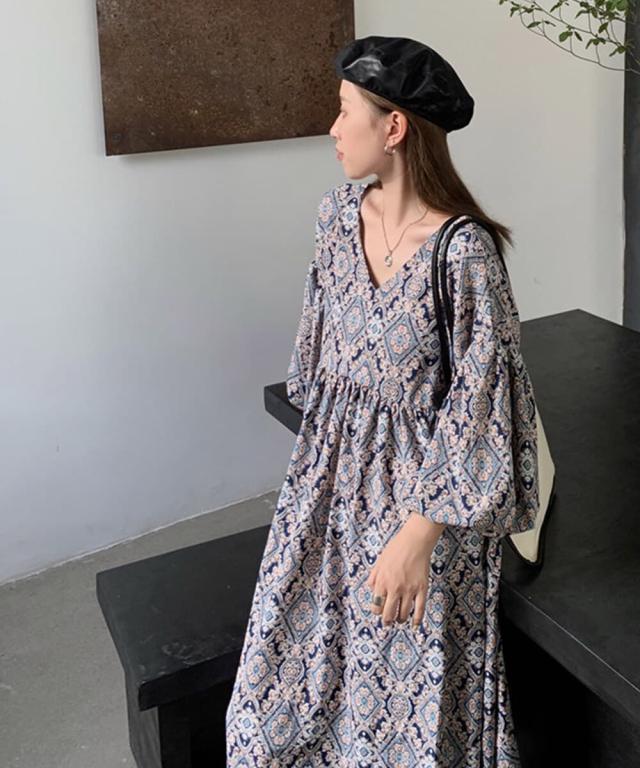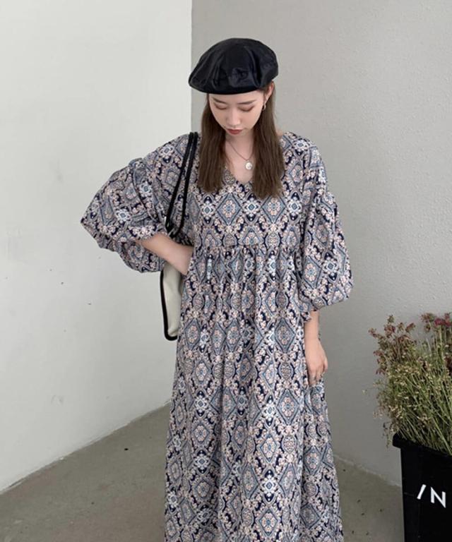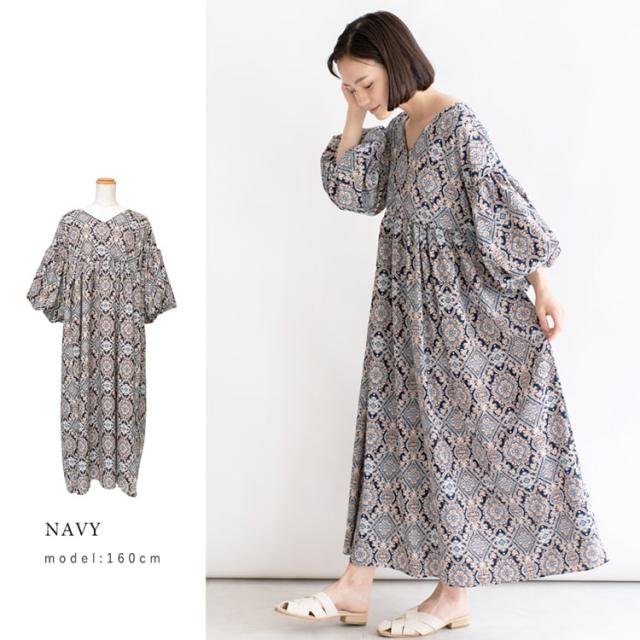 ヴィータフェリーチェ(VitaFelice)/ペイズリー柄ロングワンピース【aroco/アロコ】