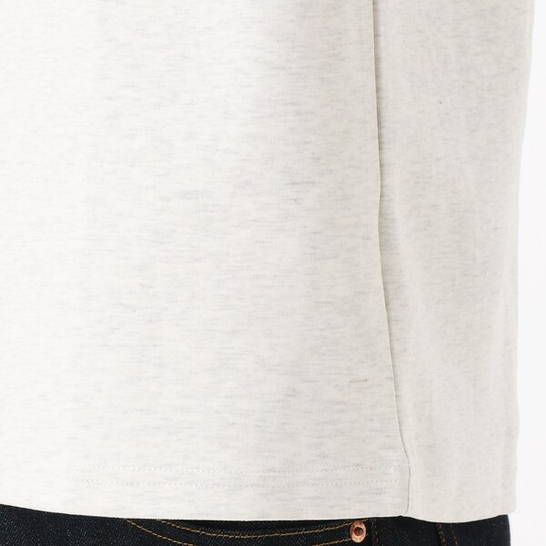 程よいボックスシルエットを採用している為、1枚で着ても肌着のような見え方はせず、抜けのあるこなれ感をお楽しみいただけます。