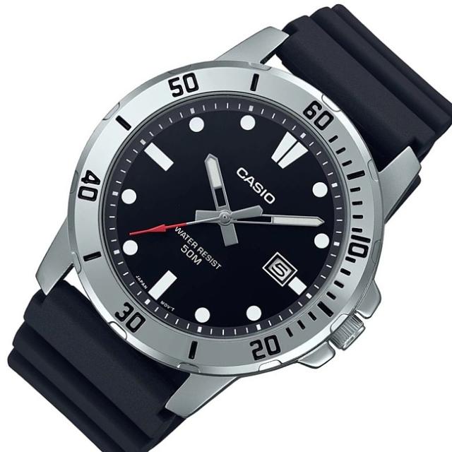 CASIO【カシオ】スタンダード メンズ腕時計 ブラック文字盤 ブラックラバーベルト 海外モデル MTP-VD01-1E