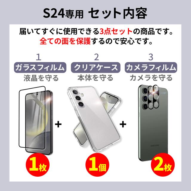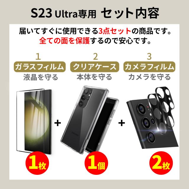 | 商品名 | Galaxy S24 / S24 Ultra / S23 / S23 Ultra ガラスフィルム クリアケース カメラレンズフィルム 3点セット |