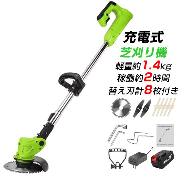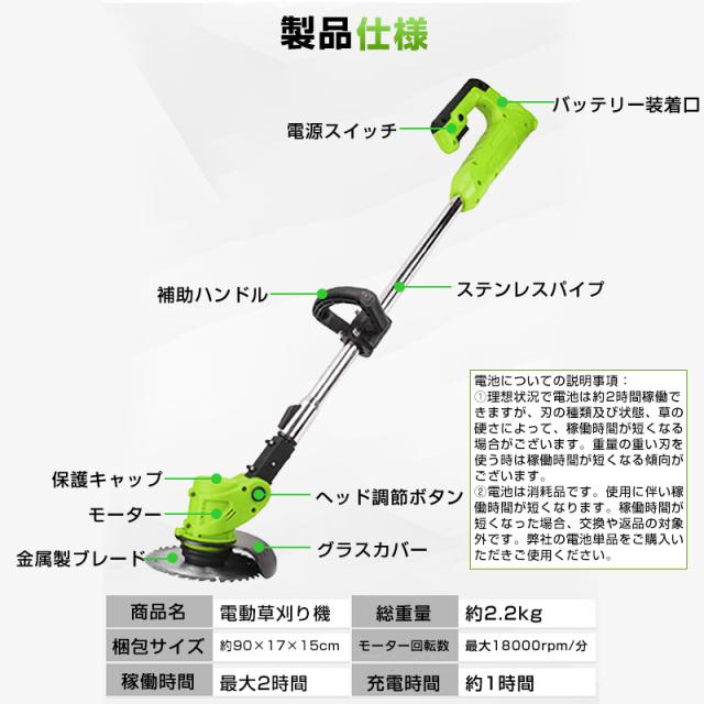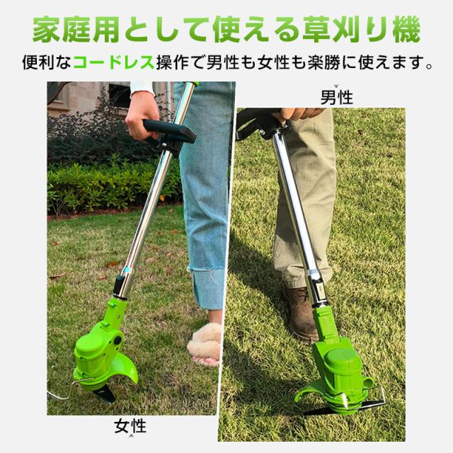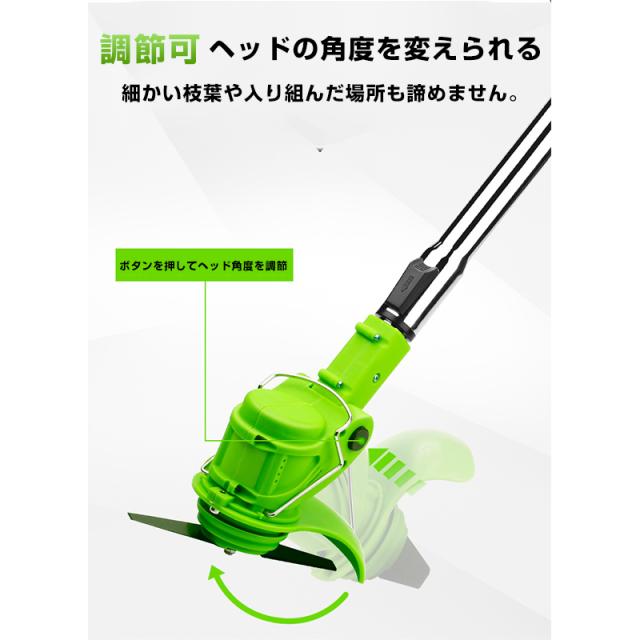 電動草刈り機 コードレス 充電式 芝刈機 刈払機 高枝切り バッテリー 変え刃付き 安全 女性使える 家庭用 初心者 軽量 雑草 芝生 庭掃除 園芸 公園 剪定 畑 草木