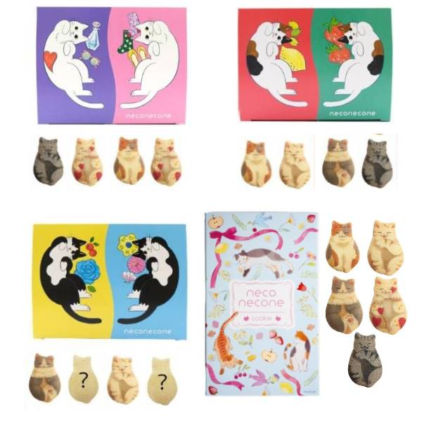 猫 お菓子 neco necone クッキー ( 4枚入 ) ブラン & キャリコ (三毛猫) & ソックス & 10枚入り (4種セット)ねこ ネコ Cat