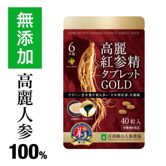 高麗人参サプリ 6年根・高麗紅参精タブレットGOLD(40粒)百済錦山人参農協/朝鮮人参 高麗人参エキス 紅参 紅人参 コウジン 御種人参 オタネニンジン サポニン ginseng supplement