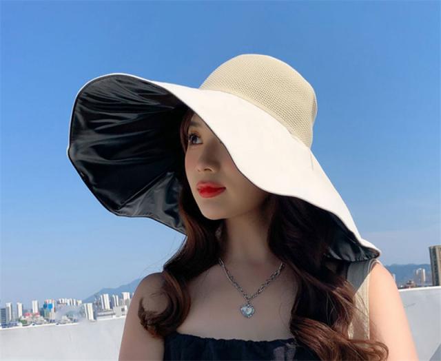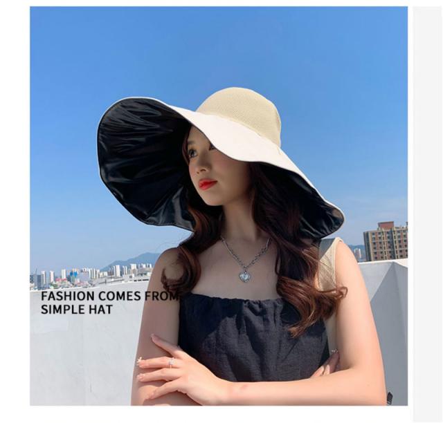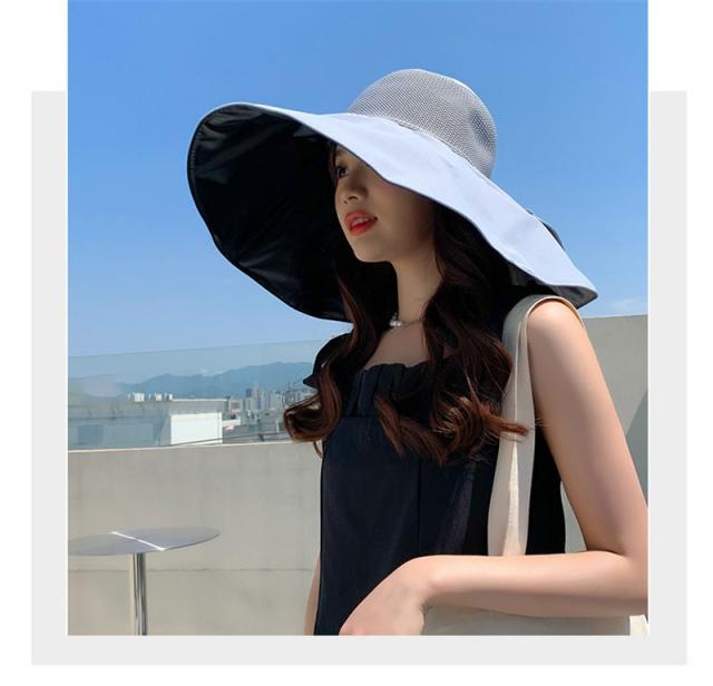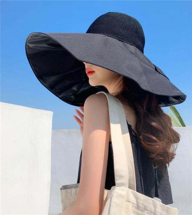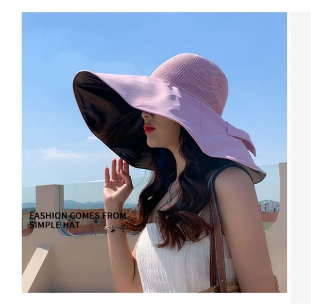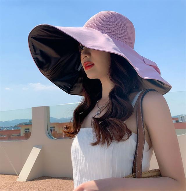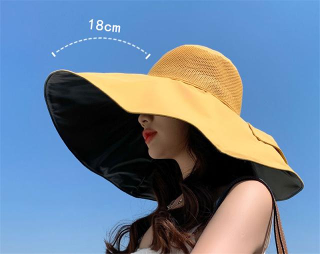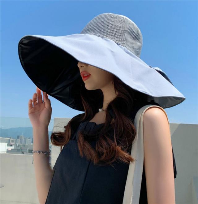 帽子 レディース つば広 サンバイザー UVカット ハット 日よけ リボン付き あご紐 大きいサイズ 紫外線対策 飛ばない 小顔効