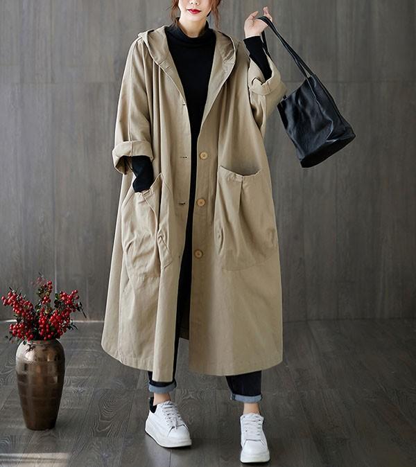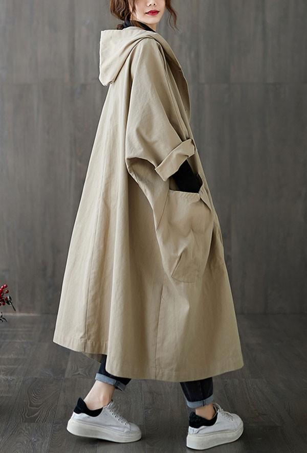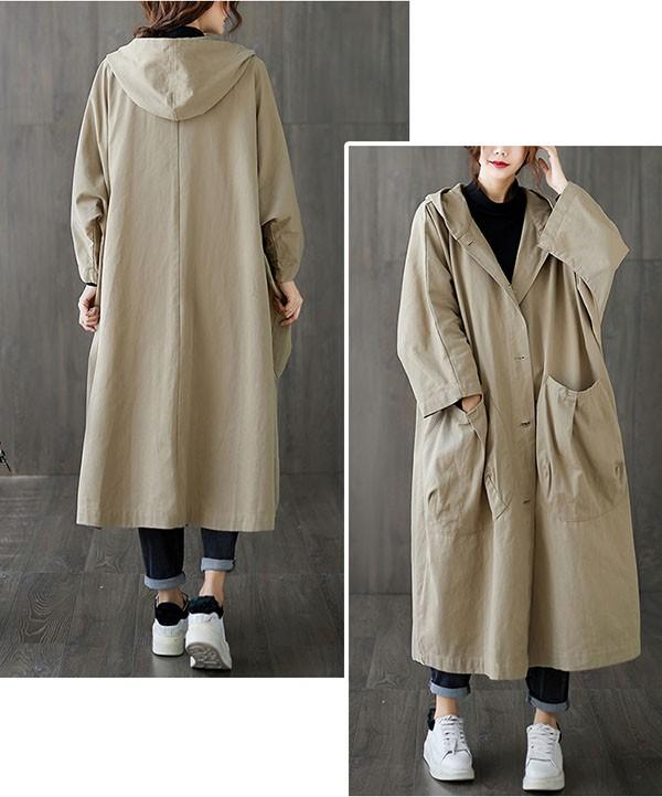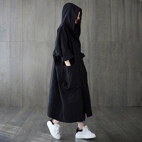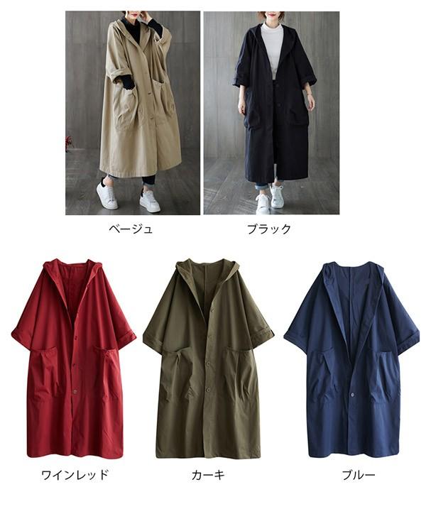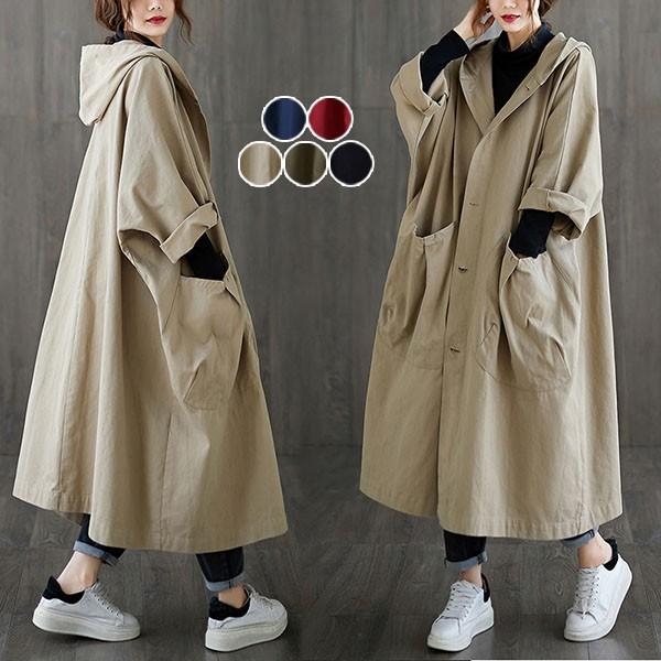 スプリングコート レディース 春 コート フード付き ロング丈 ジャケット アウター 無地 シンプル 春秋 軽量 ゆったり 着痩せ カジュアル 韓国 20代 30代 40代 50代 茶色 青 赤 カーキ 黒