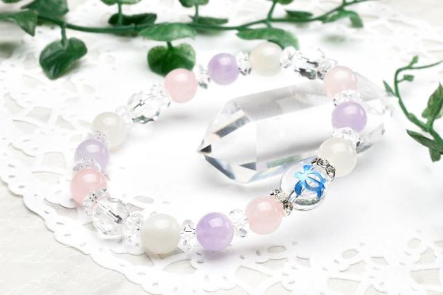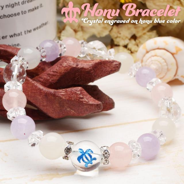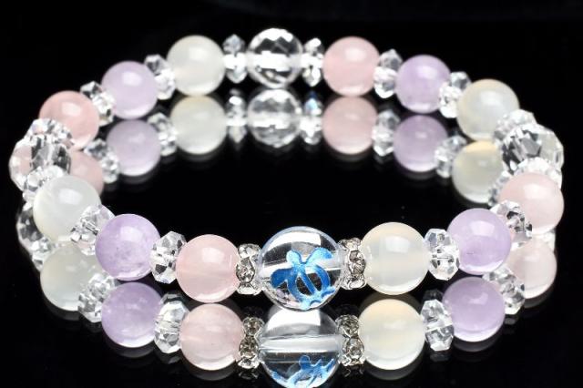 ホヌ 縁結び ローズクォーツ ラベンダーアメジスト ムーンストーン 水晶 クォーツ ブレスレット アクセサリー パワーストーン 天然石 幸運 幸福 運勢 運気アップ _A1214