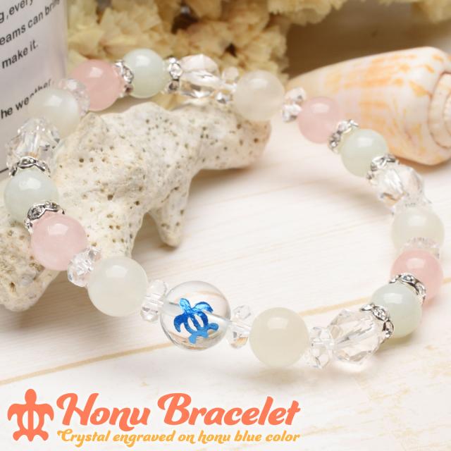 ホヌ 恋愛成就 ローズクォーツ ビルマ翡翠 ムーンストーン 水晶 クォーツ ブレスレット アクセサリー パワーストーン 天然石 幸運 幸福 運勢 運気アップ _A1216