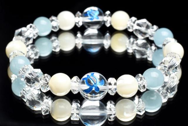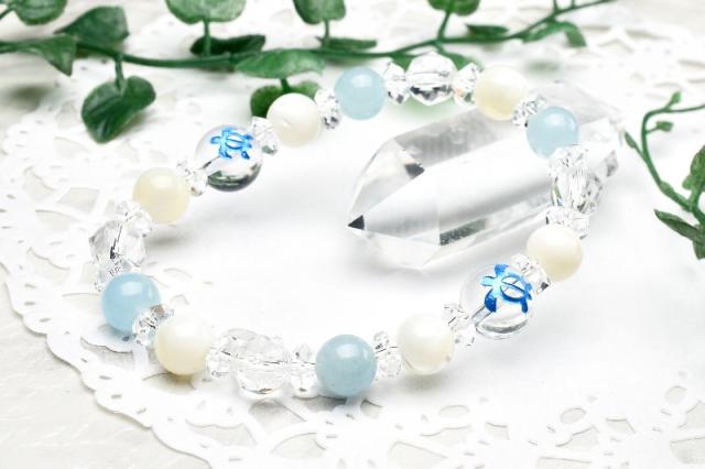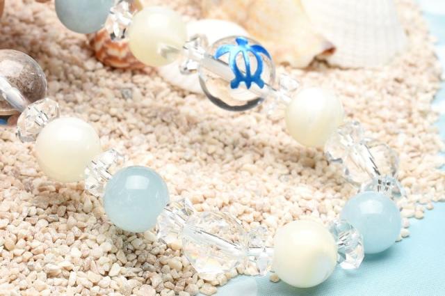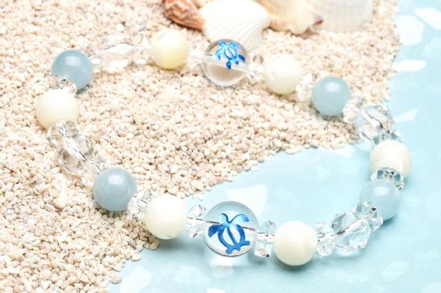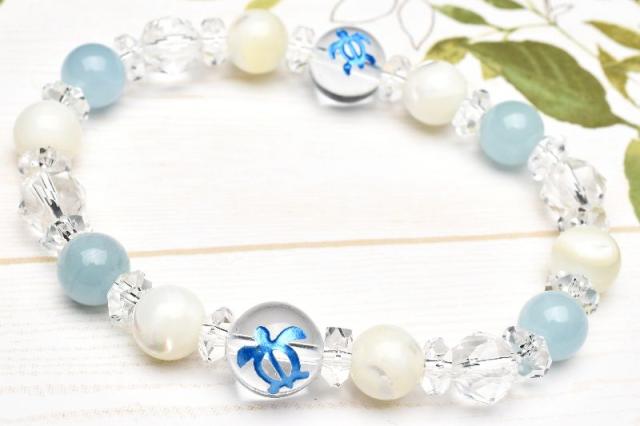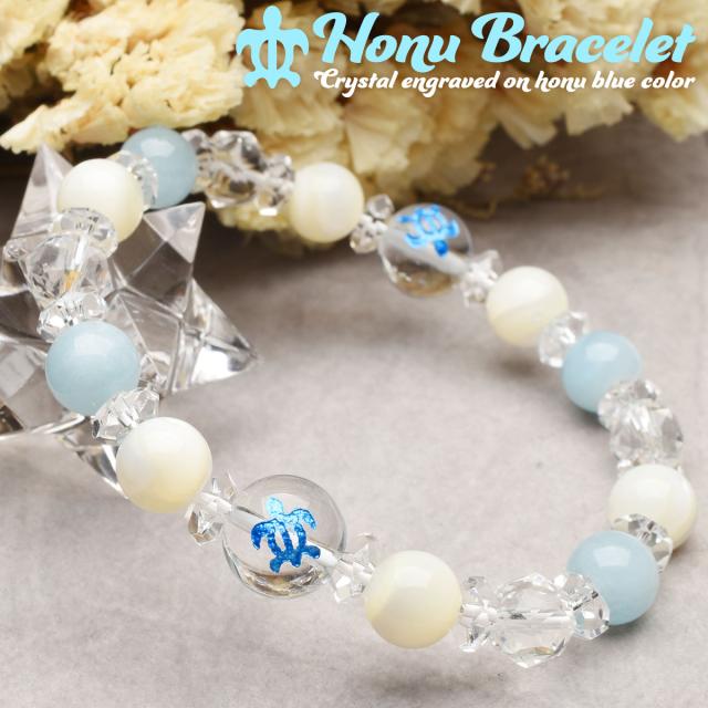 ホヌ 健康運 アクアマリン マザーオブパール 水晶 クォーツ ブレスレット アクセサリー パワーストーン 天然石 幸運 幸福 運勢 運気アップ _A1217