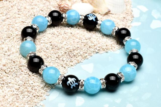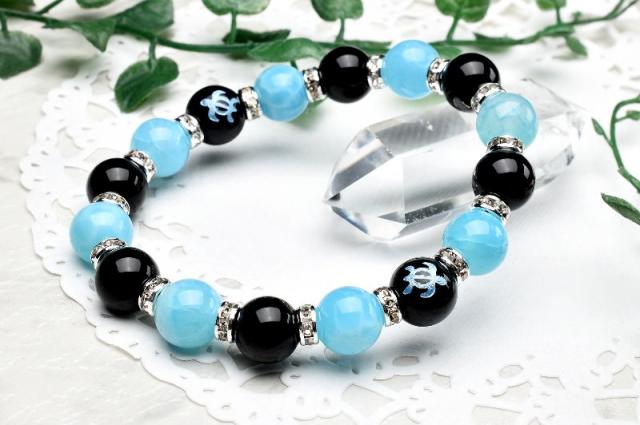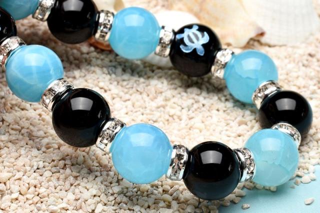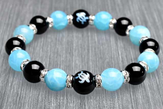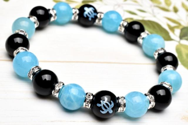 ホヌ 仕事運 オニキス ラリマーブルー龍紋瑪瑙 ドラゴンアゲート ブレスレット アクセサリー パワーストーン 天然石 幸運 幸福 運勢 運気アップ _A1221