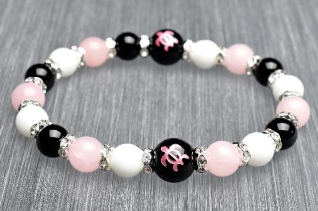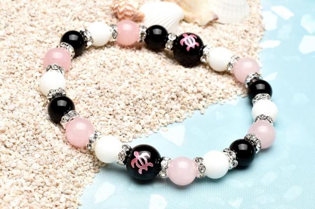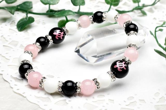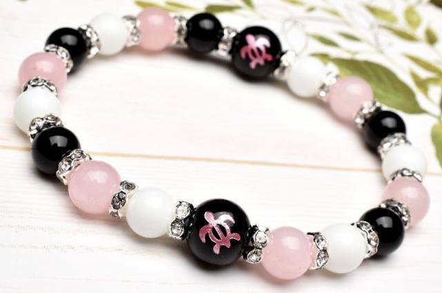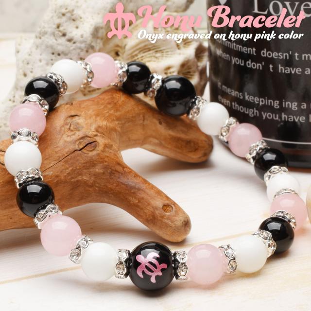 ホヌ 目標達成 オニキス ホワイトオニキス ローズクォーツ ブレスレット アクセサリー パワーストーン 天然石 幸運 幸福 運勢 運気アップ _A1222