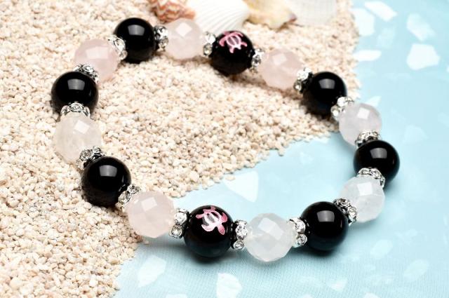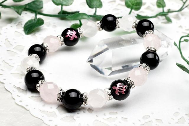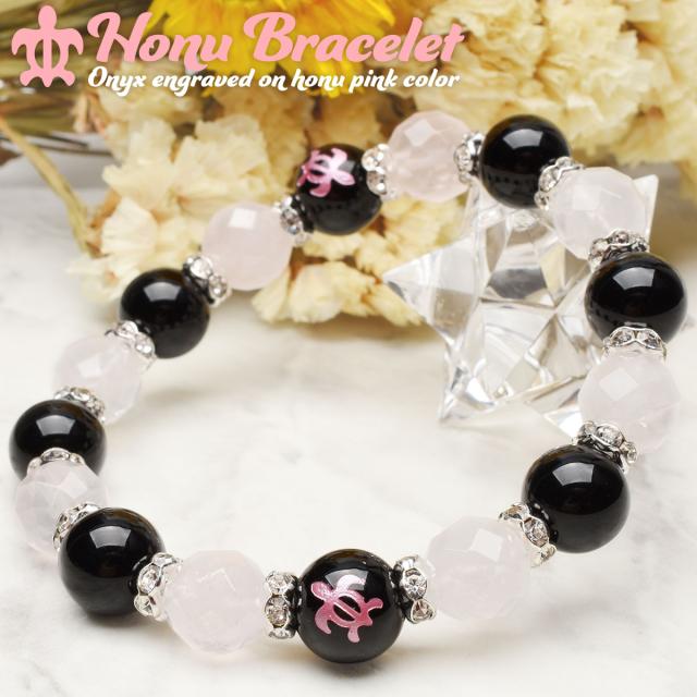 ホヌ 恋愛成就 オニキス ローズクォーツ ブレスレット アクセサリー パワーストーン 天然石 幸運 幸福 運勢 運気アップ _A1223