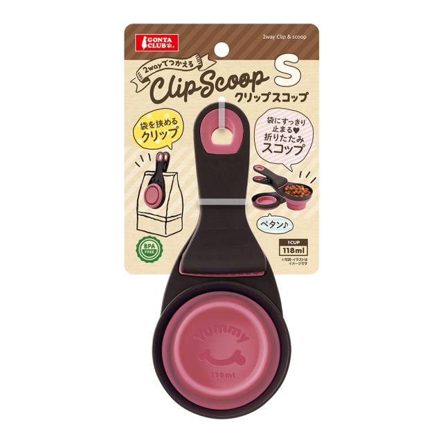 袋の口を挟める便利なクリップと手を汚さずフードをすくえ、コンパクトにもなる折りたたみスコップの2way仕様です。