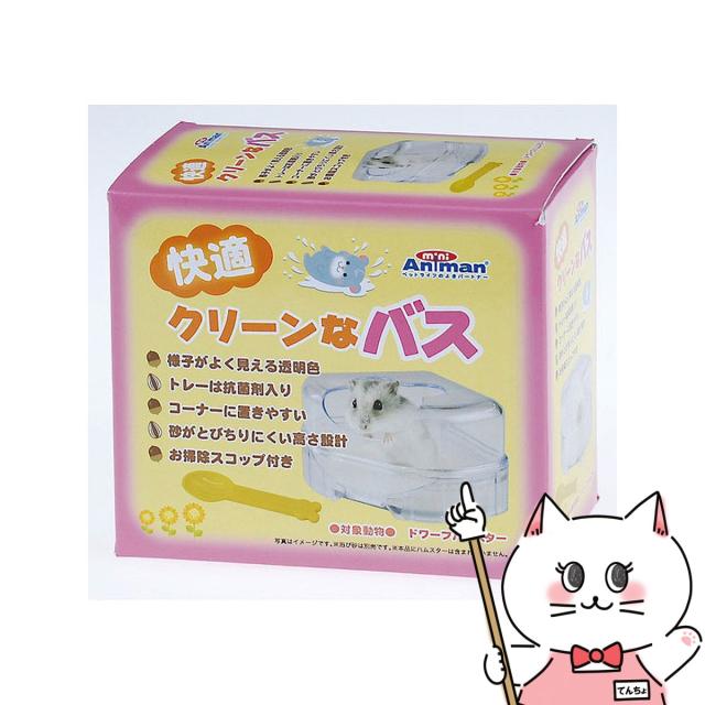 ・中の様子がよく見える透明色。・ハムスター専用のバス。・コーナーに置きやすい形のハムスター専用の砂浴びハウス。・浴び砂を約1cm入れるだけで、簡単設置。フンやオシッコで汚れた部分はお掃除スコップで取り除いて同量の砂を足す。1週間〜10日を目安に新しい砂と入れかえてください。 ・砂がとびちりにくい高さに設計。・トレーは抗菌剤入り。