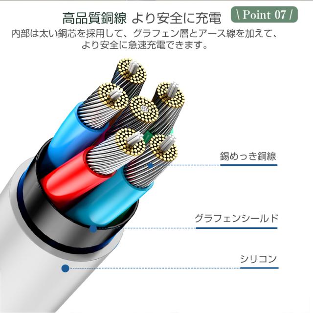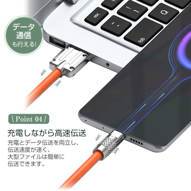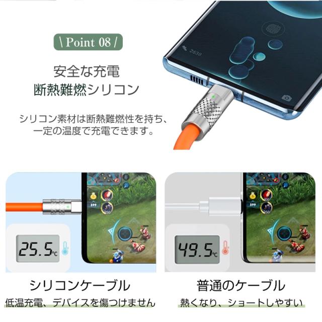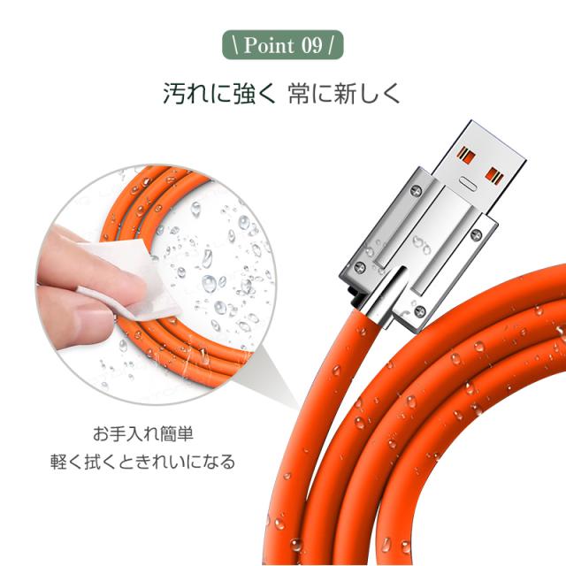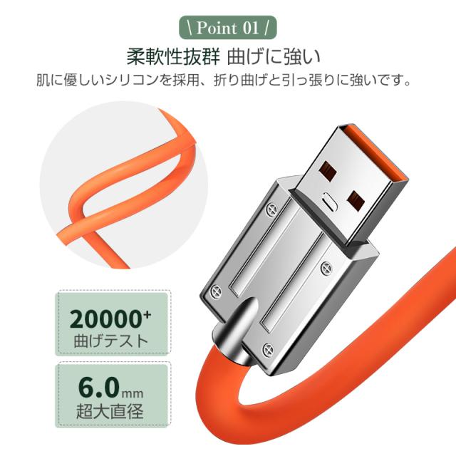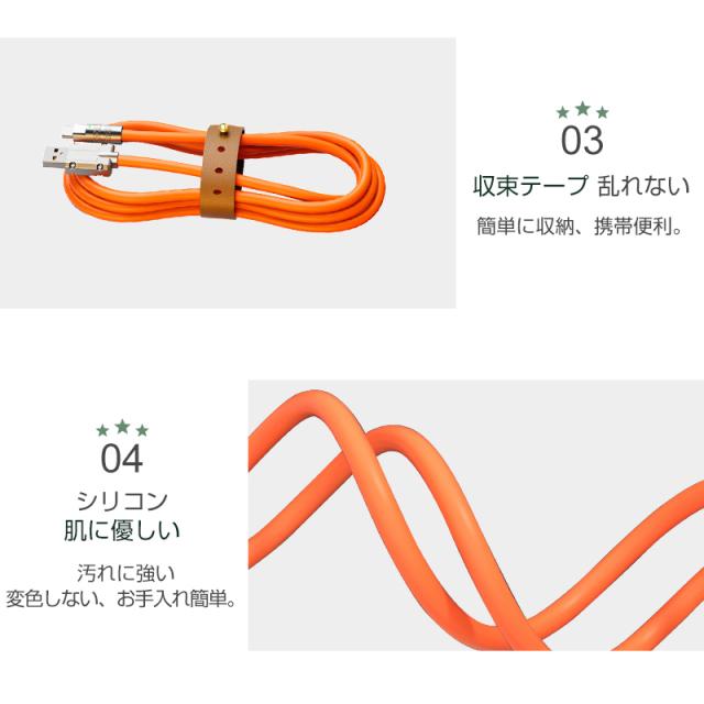 【かつてない柔軟性】外装には環境に優しい液体シリコン素材を採用し、従来のケーブルにはないやわらかさを実現し、肌に柔らかく爽やかな手触りを与えます。ほこり・汚れ・指紋に強いです。