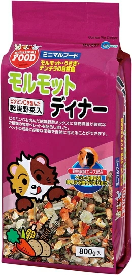 4906456531203ビタミンCをはじめとした各種ビタミンを含んだ乾燥野菜ミックスに食物繊維が豊富な2種類の牧草ペレットを配合しました。ペットの成長や健康促進に必要な栄養を自然に与えることができます。