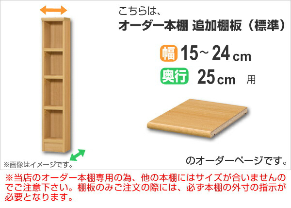 専用追加棚板 オーダー本棚 奥行25cm 本体幅15-24cm用 ( 追加棚板 専用パーツ 棚板 棚 オーダー 標準棚板 オーダー本棚用 可動棚 オプション 追加 専用 本棚 )