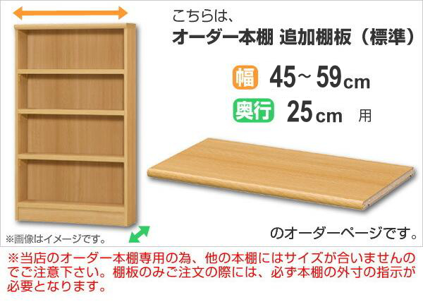 専用追加棚板 オーダー本棚 奥行25cm 本体幅45-59cm用 ( 追加棚板 専用パーツ 棚板 棚 オーダー 標準棚板 オーダー本棚用 可動棚 オプション 追加 専用 本棚 )