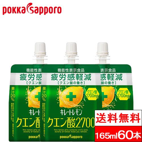 送料無料 キレートレモン クエン酸2700 ゼリー 165ml 30本×2箱(60本) ポッカサッポロ ゼリー飲料 パウチ ゼリードリンク 機能性表示食品 レモンゼリー クエン酸 エネルギー ブドウ糖 レモン ビタミンc