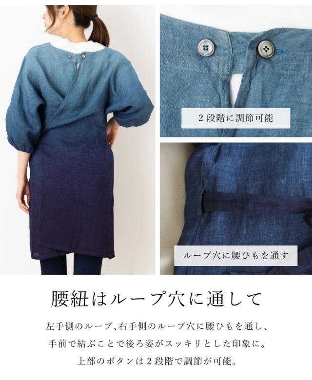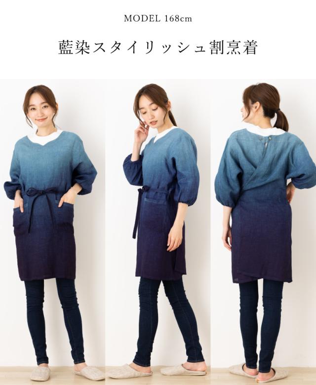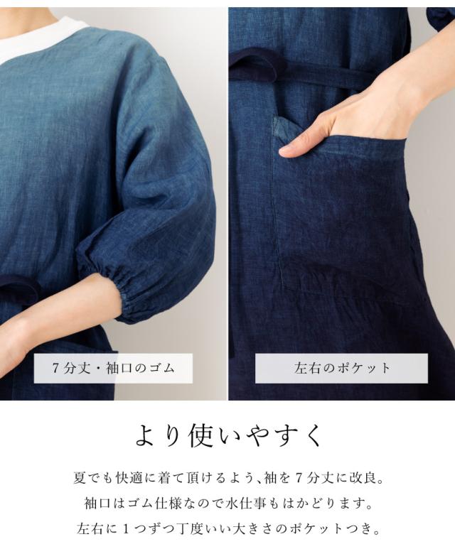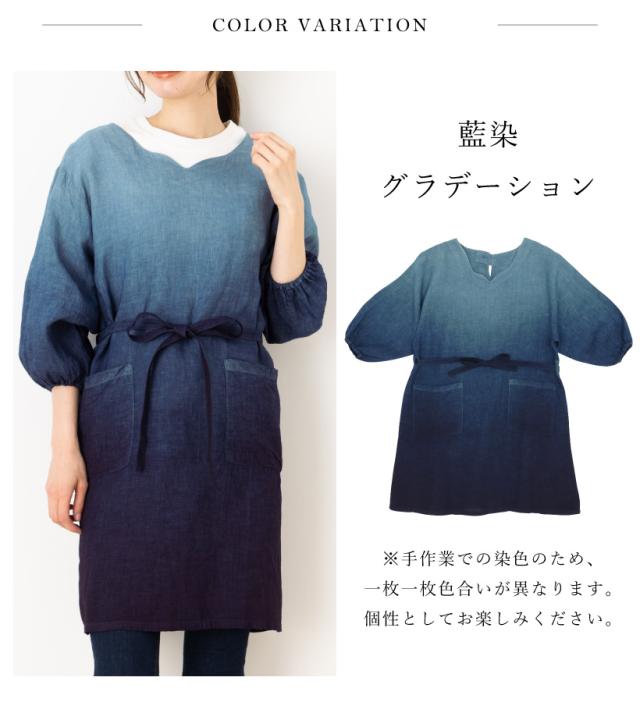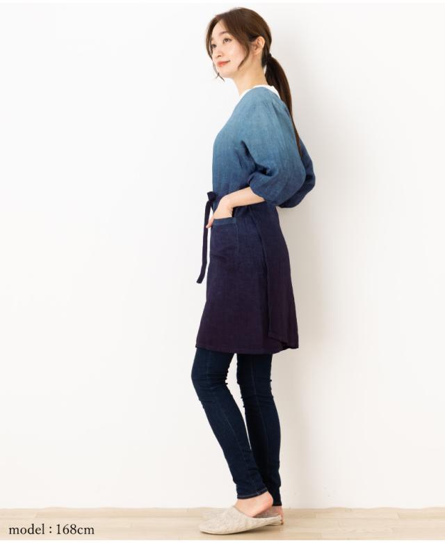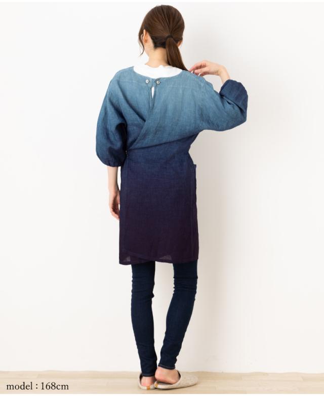 【宅急便送料無料】藍染スタイリッシュエプロン(7分袖) 日本製 藍染め おしゃれ グラデーション ギフト プレゼント