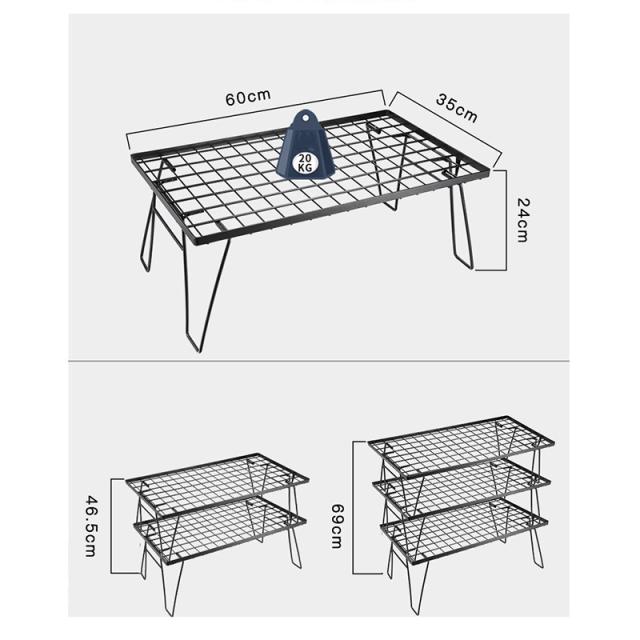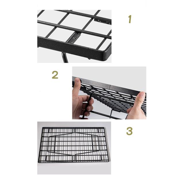 【頑丈なスチール/耐荷重は1卓約20kg】テーブルはスチール製で、1卓あたりの耐荷重は約20kgと安定して食卓を囲めます。表面はクロムメッキ加工の防サビ対策を施しています。天面は耐熱メッシュ仕様で熱い鍋やケトルを置いても大丈夫です。また、洗った食器やカップの水切り、通気性がよく乾きも速くて便利です。