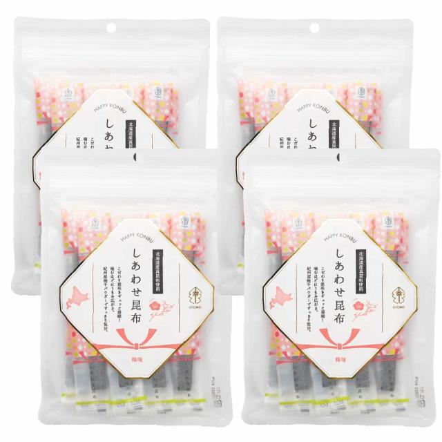 しあわせ昆布 梅味 65g × 4袋セット メール便 送料無料 こんぶ コンブ 国産 北海道産 駄菓子 お茶請け おやつ ダイエット 食物繊維 珍味 おつまみ お菓子 ハッピーカンパニー