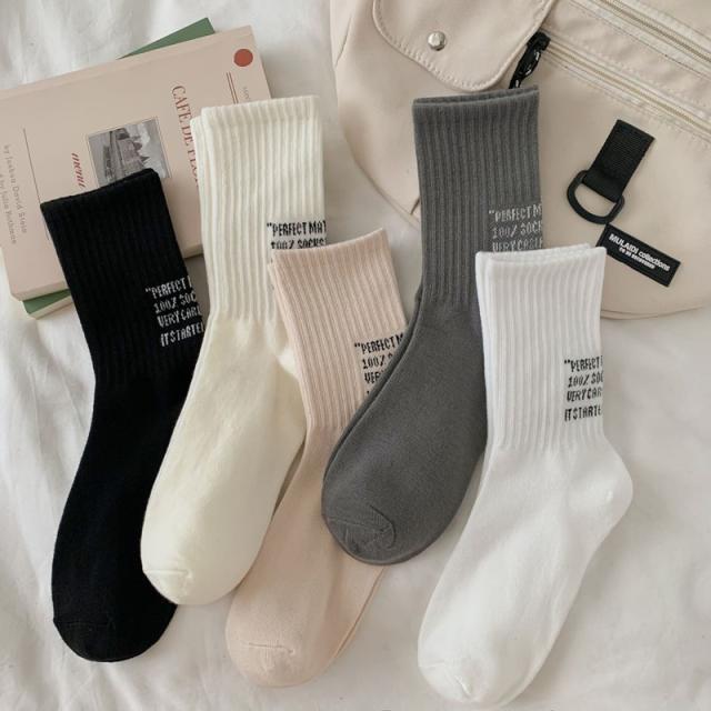 バックロゴ デザイン ソックス 5足set 靴下 まとめ売り 綿 チューブソックス くるぶし上 22cm〜24.5cm