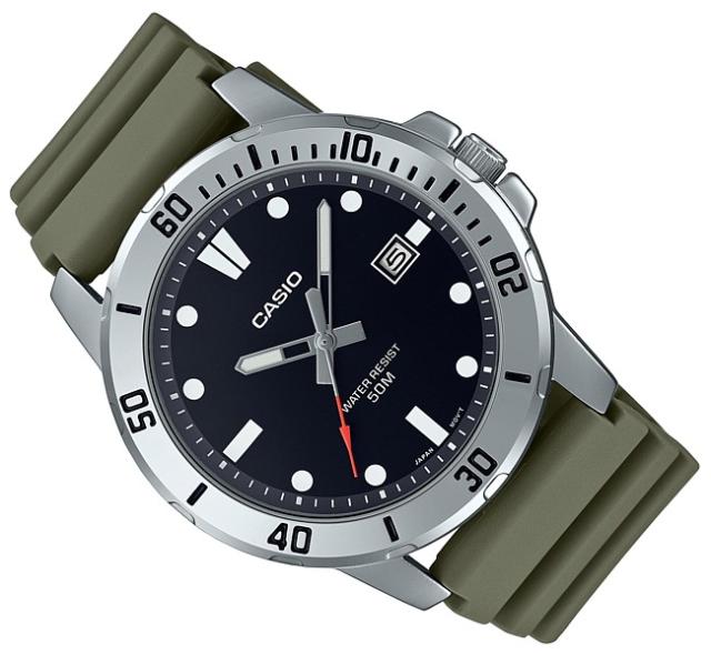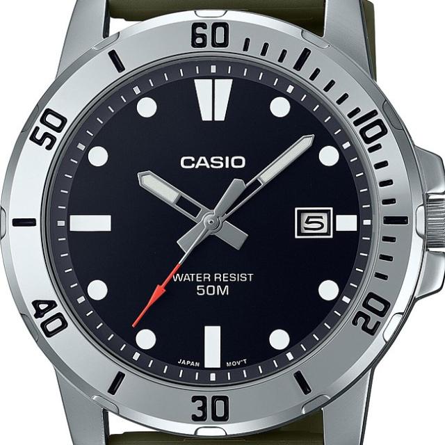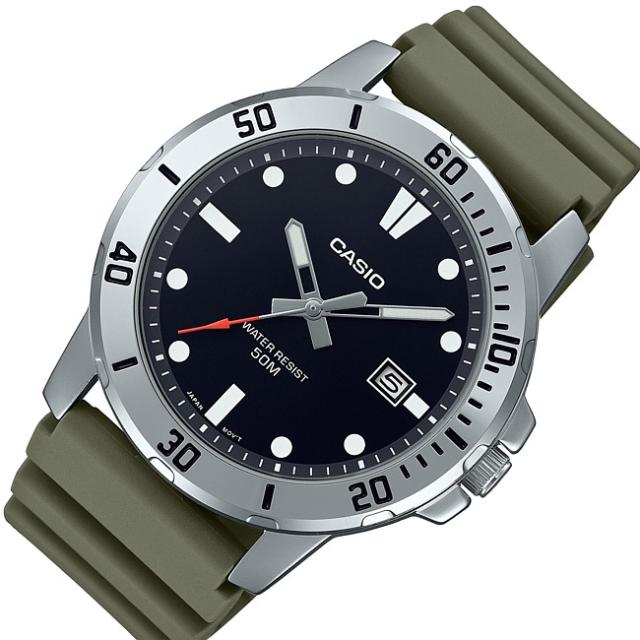 CASIO【カシオ】スタンダード メンズ腕時計 ブラック文字盤 グリーンラバーベルト 海外モデル MTP-VD01-3E