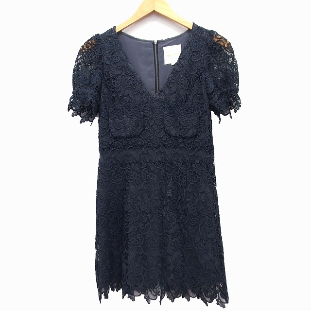 【中古】ローズブリット rosebullet ワンピース パーティードレス 膝丈 レース 花柄 半袖 Vネック 1 チャコール 灰