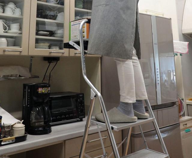 ・広い踏み面で安心な脚立です。